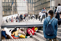 Was haben sie gemeinsam? Was trennt sie? Was sind ihre Intentionen? Eine gemeinsame Ausgangsbasis und ein gemeinsamer Fokus ist das städtische Territorium. Andrea Seidling führt zum Training mit Willi Dorner, das von einer Videokamera und einer Fotografin aufgezeichnet wird.